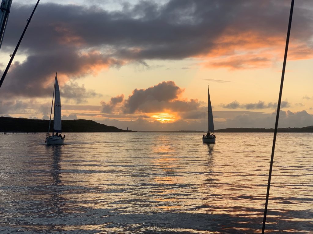 The Clifden boat club cruiser fleet generally sails on a Thursday evening weather permitting. If the weather is good boats will sail on Saturdays as well. From time to time cruises will take place to the islands and to other destinations further afield. We have a number of cruising yachts at the club where our skippers sail around Ireland to locations such as the Fastnet rock. Scratch crews are invited to join the cruisers on Thursday nights for a sail around the bay or even a race if conditions suit. If you are interested in joining in inquire using the Contact Page